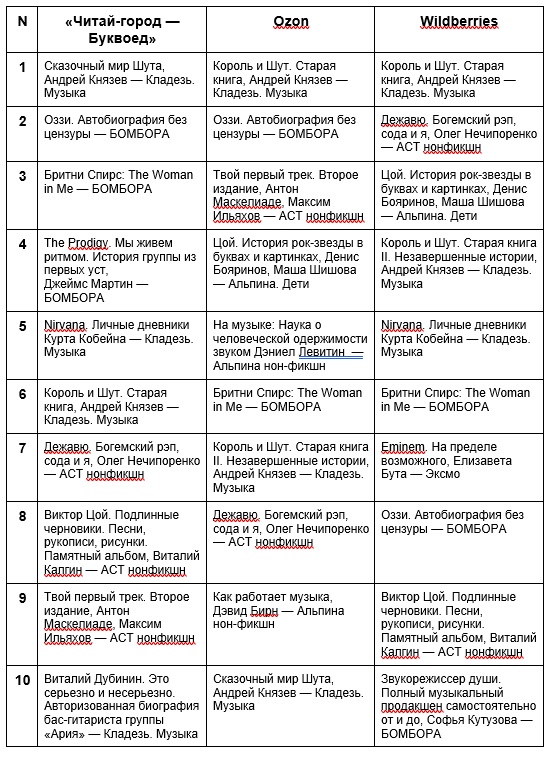 Самыми востребованными в книгах музыкальными коллективами по продажам в 2024 году стали: