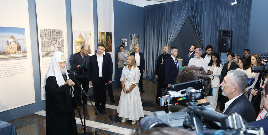 Патриарх Кирилл открыл выставку «Москва и жизнь. Возрождение московского Храма», организованную Фондом Юрия Лужкова